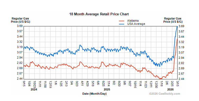 The economic landscape across the State of Alabama is undergoing a seismic shift as volatile global energy markets drive fuel prices to their highest levels in years. While motorists from the Tennessee Valley to the Port of Mobile are feeling the immediate sting of rising gasoline prices, a more aggressive "diesel shock" is emerging as the primary threat to the state’s economic stability. Data from AAA and the U.S. Energy Information Administration indicates that diesel prices are outstripping gasoline in terms of both the rate of increase and overall market volatility, creating a localized inflationary pressure that is poised to drive up the cost of consumer goods across the Heart of Dixie.