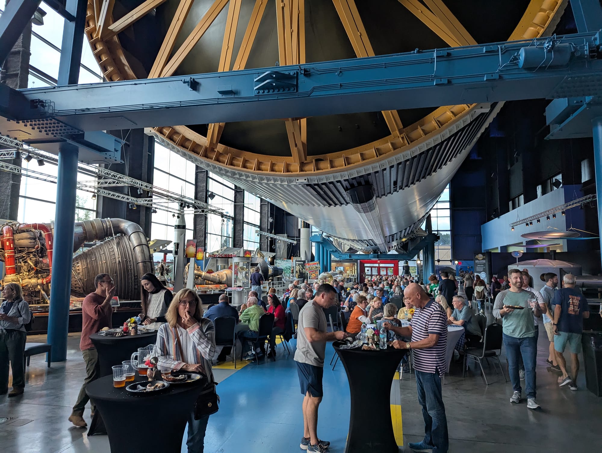 What sets the U.S. Space & Rocket Center's Biergarten apart is its extraordinary location. Nestled in the Davidson Center, participants dine directly under the massive Saturn V rocket – the engineering marvel that propelled astronauts to the moon during the Apollo missions. The rocket's imposing presence, suspended horizontally overhead, creates a surreal backdrop that merges Huntsville's aerospace legacy with European festivity.