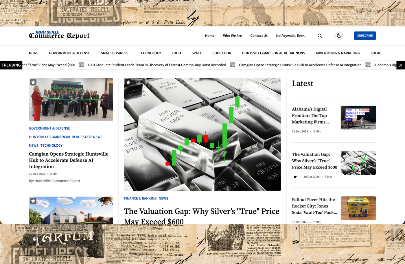 The revamped Huntsville Commerce Report is live now, offering a refreshed, professional lens on the economic forces shaping Alabama.